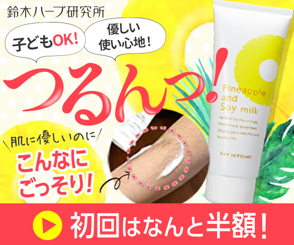 パイナップル豆乳除毛クリームは除毛用のクリームの中では刺激も少なく、肌にも優しい感じですが、それでもさすがにデリケートな場所や顔には使えません。 が、脱毛サロンに行くのが不安だったり、即!なくしたい時にはイチオシできると思いました。手軽で安心・便利です。 パイナップル豆乳除毛セット 特に、子供さんとか、男性だとサロンに通うって心理的なハードルも高いですよね。自宅で出来ると、心理的にも時間的・金銭的にもずいぶん助かります。 クリーム単品は ➤ パイナップル豆乳除毛クリーム より効果を高めたい時は ➤ 2ステップスターターセット