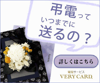 「辞退」にも3種類ありますので、ご参考までに。 「香典辞退」・・・・・香典だけを辞退されておられますので、供花や供物は贈ることが出来ます。 「ご厚志辞退」・・・・香典・供花・供物一切を辞退されています。 「供花・供物辞退」・・香典を持参できます。都市部ではあまりないかと思いますが、モノであふれかえるような地域では、辞退なさることもあるようです。 供花も、自分で持参したお花のを飾ることが出来ることは稀なので、葬儀会場に問い合わせた時に、対応してくれる花屋さん、締め切り時間、お値段は聞いておいたほうが無難です。 先日は、なんと供花の申し込みがネットで出来ました。 大手さんだったせいもあるかとは思いますが、ついに、そんな時代になったんだなぁ~、と別の感慨もありました。 VeryCardで供花を頼む 今回使わせていただいた公益社さんのサービスでは「照会番号」で、葬儀の日時・会場などを管理されているらしく「照会番号」を入れたら、ダダダッと、出てきて、喪家名など、間違いがないかの確認も同時にできたので安心感がありました。 供花の締め切り時間は通夜・告別式の数時間前が一般的なようです。お通夜に間に合えば、もちろん2日間飾っていただけます。 供花をWEB申し込みできるような斎場は少ないと思いますが、電報サービス【VERY CARD】では、なんと、14時までに申し込めば、ほとんどの地域で即日手配可能な供花受付をしています。 佐川急便の子会社というネットワークの賜物でしょうか。 ご香典辞退が多い関西では、おぼえておくといいサービスかもしれません。 供花は地域の風習もありますし、稀には喪家さまが花種などご希望がある場合もあるので、このワンストップサービスは、礼を失しないという点でも便利ですね。
