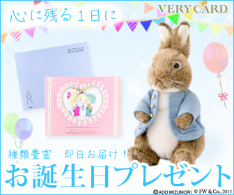 ピーターラビットはぬいぐるみもあるけど、台紙だけの電報もあります。ぬいぐるみは恥ずかしいけど、ちょっとカワイイ祝電がないかな、というとき便利そう。